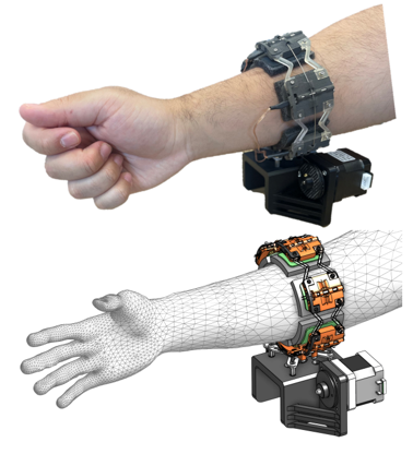 This project developed an actuated tensioning system for wearable robot interfaces that dynamically modulates strap tension based on real-time force feedback. The system used distributed force sensing to maintain optimal interface pressure for user comfort and interaction quality.