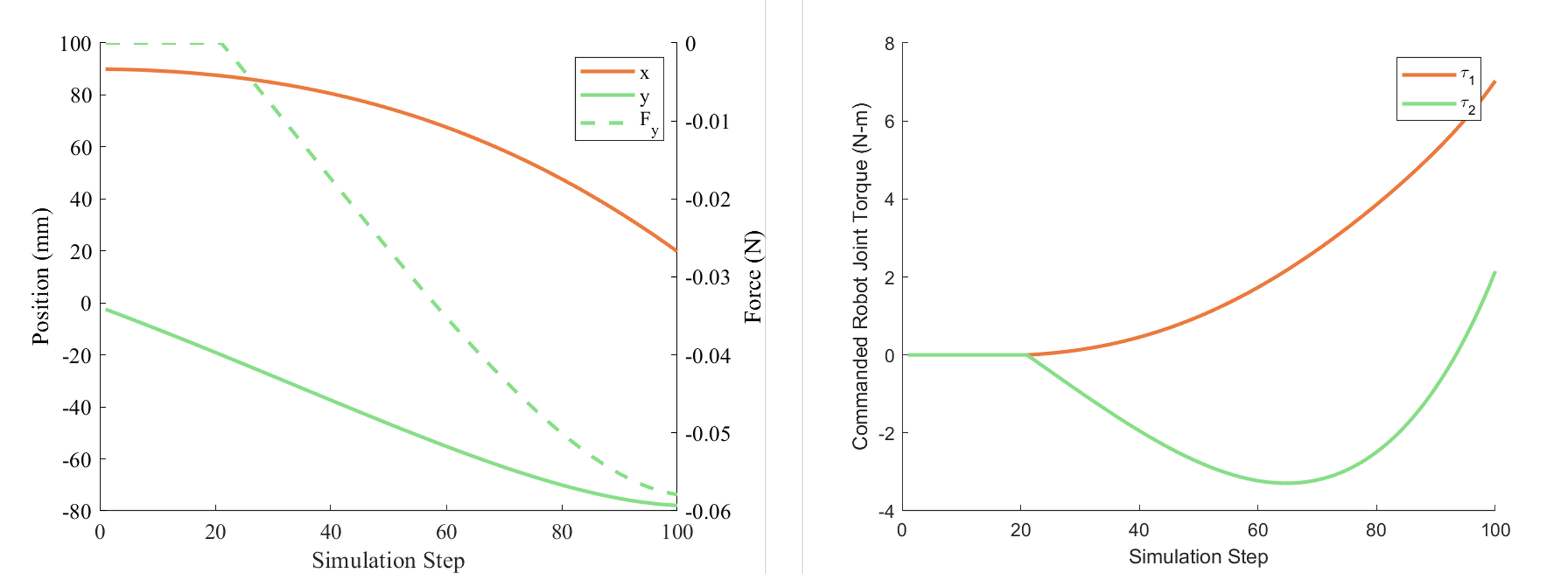 Created Simscape Multibody simulation models incorporating viscoelastic tissue properties and compliant interface mechanics for pHRI prediction
