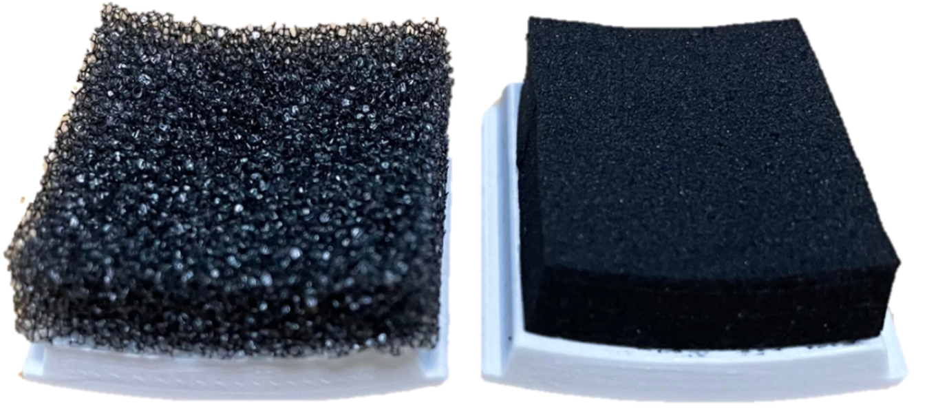 Two types of foam are compared in this paper: polyurethane or PU (left) and blended ethylene propylene diene monomer (EPDM) (right).