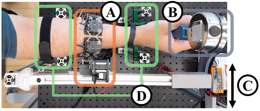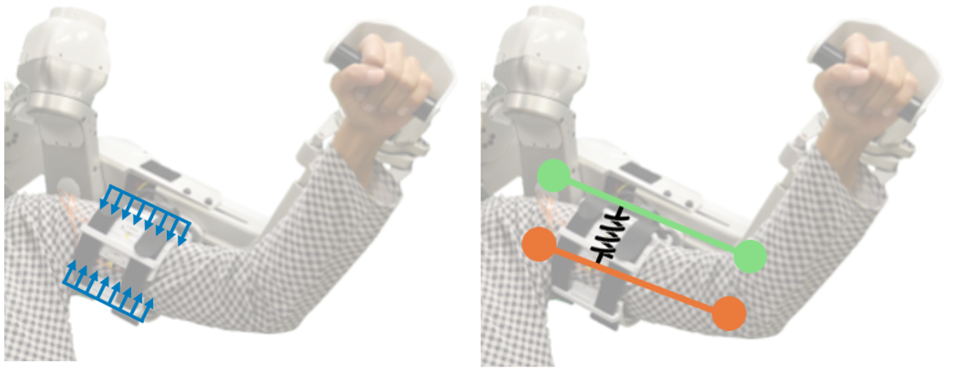 This research examined how strap pretension and user muscle activation jointly influence physical comfort and interaction quality at forearm attachment interfaces. The study developed methods for actively modulating interface properties to optimize human-robot coupling during device operation.