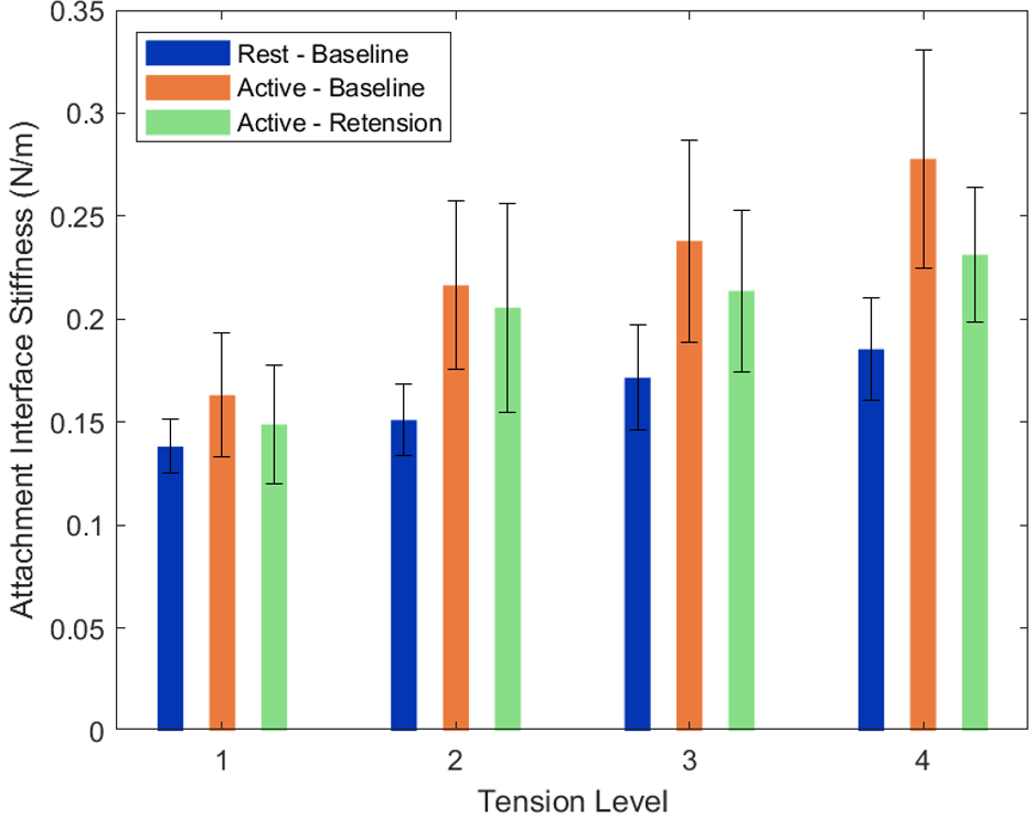 Demonstrated quantitative relationship between strap pretension, muscle activation, and interaction port stiffness through systematic experimental validation